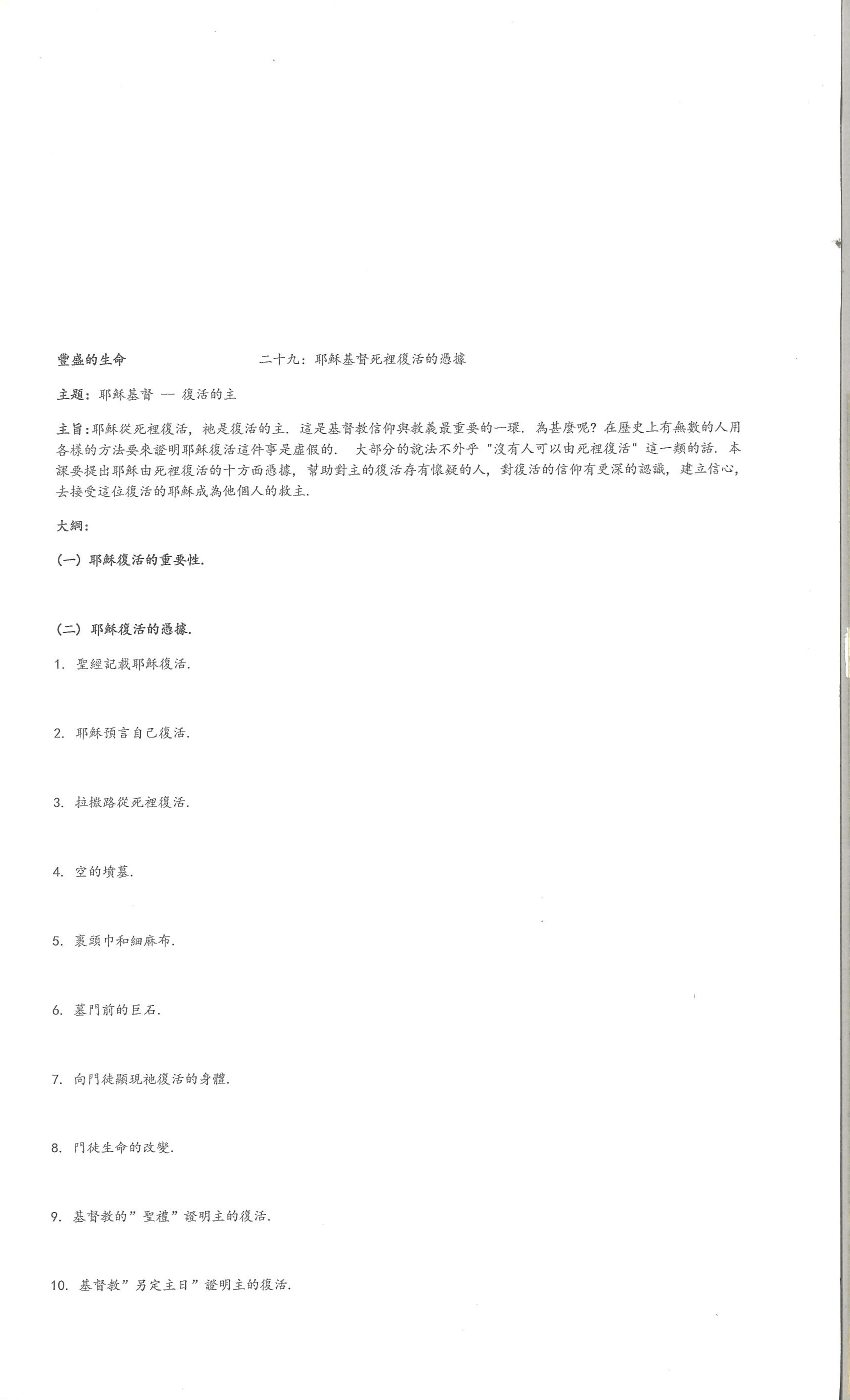 2013 課程和靈修時間表 主!我要遇见你 演唱:施孝榮 歌鐠 錄音 YouTube 第一課 禱告的生活 講義 第二課 靈修 講義 第三課 得救的確據 講義 第四課 浸禮 講義 第五課 得勝的生活 講義 第六課 明白神的旨意 講義 第七課 教會生活 第八課 好管家 第九課 傳福音–大使命 第十課 有異象的人生 第十一課 考試 |